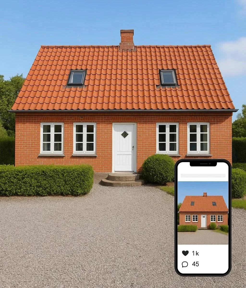 Som ejendomsmægler kan du få billeder og videoer fra MB Ejendomsfoto, der allerede er optimeret til sociale medier. Materialet leveres i den rette størrelse med korrekt lys og komposition, så det ser professionelt ud på både telefon og computer og er klart til at bruge på Instagram, Facebook, TikTok eller din egen hjemmeside. Dette gør det nemt at tiltrække købere og få dem til at dele annoncen videre.